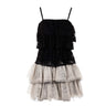 - vestito corto rinascimento senza maniche con frange in pizzo